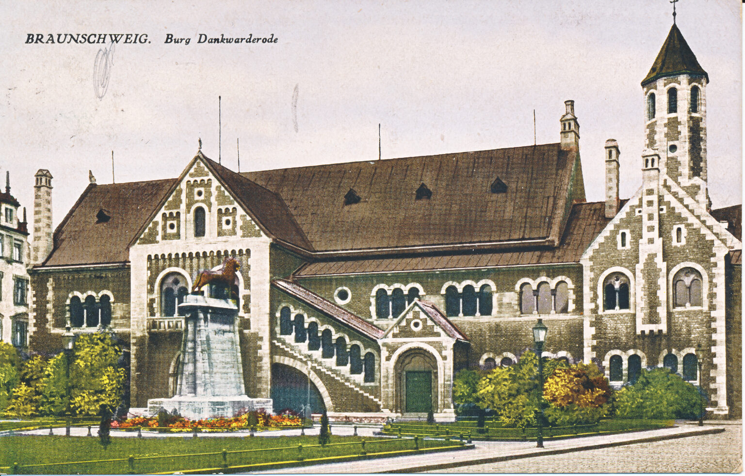 1908 – Die Burg Dankwarderode. Im Hintergrund rechts das damals „neue“ Rathaus.