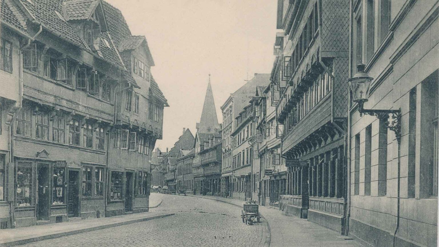 1908: Viel schönes altes Fachwerk dominierte die Straße. Im Blickpunkt: Die Michaeliskirche.